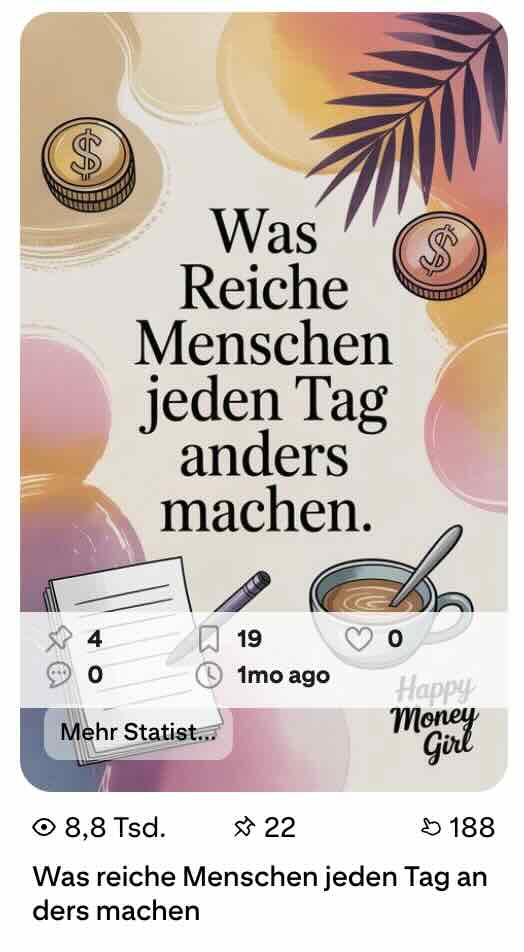 Während Google über Texte funktioniert, arbeitet Pinterest über Bilder, Überschriften und klare Versprechen. Beides zusammen verstärkt sich.